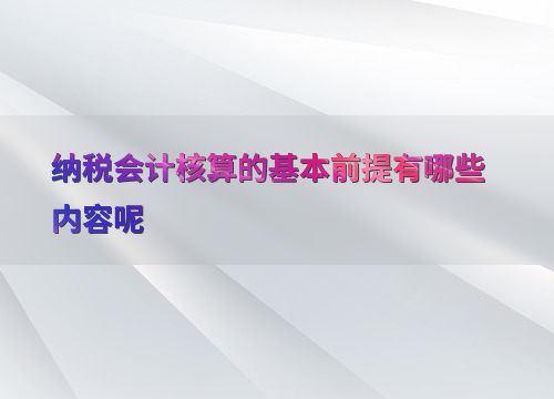 在进行纳税会计核算时,必须遵循一些基本的前提条件,这些前提构成了整个税务处理的基础。