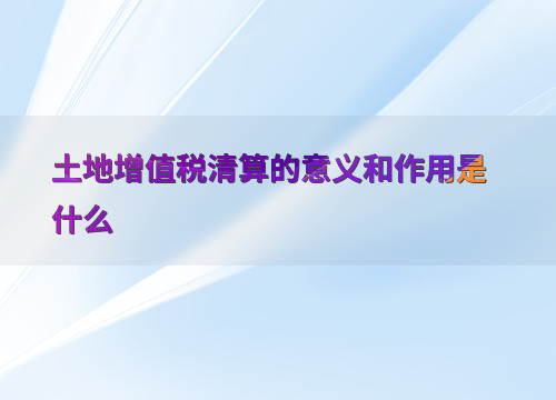 土地增值税清算的意义和作用是什么