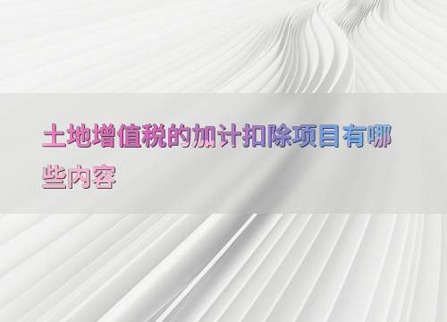 如何准确计算土地增值税的加计扣除金额?答:准确计算加计扣除金额需要详细记录各项开发成本和费用,并按照规定的比例进行加计。例如,对于某些特定类型的房地产项目,加计扣除比例可能有所不同,因此需要根据具体情况进行调整。