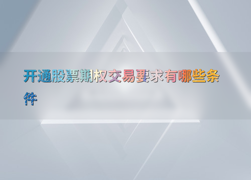 开通股票期权交易需要满足一系列严格的条件,以确保投资者具备足够的知识和资金实力来应对高风险的投资环境。