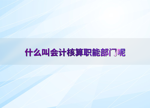 什么叫会计核算职能部门呢