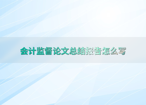 撰写会计监督论文总结报告时,明确的结构和详实的内容是关键。