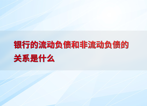银行的流动负债和非流动负债的关系是什么
