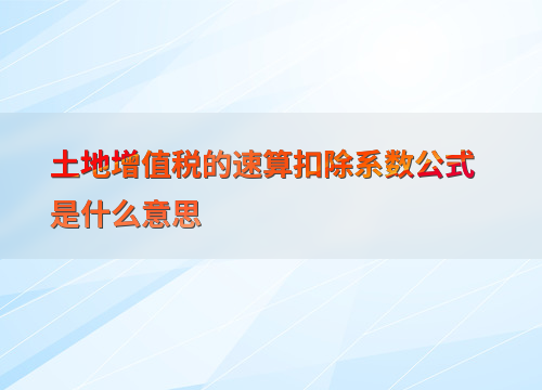 土地增值税的速算扣除系数公式是什么意思
