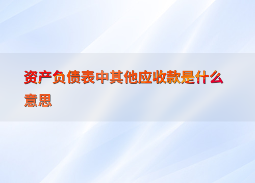 在资产负债表中,其他应收款是指企业在日常经营活动中形成的、除应收账款和预付款项之外的各种应收及暂付款项。