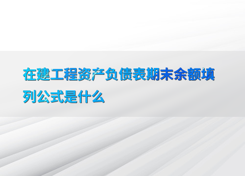 在建工程资产负债表期末余额填列公式是什么