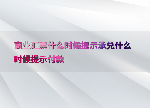 提示付款是指持票人在票据到期日或到期日后的一段时间内,向付款人请求支付票面金额的行为。对于定日付款、出票后定期付款或者见票后定期付款的汇票,持票人应在到期日起十日内向付款人提示付款。