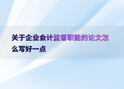 关于企业会计监督职能的论文怎么写好一点