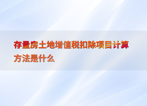 存量房土地增值税扣除项目计算方法是什么