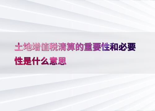 土地增值税清算的重要性和必要性是什么意思