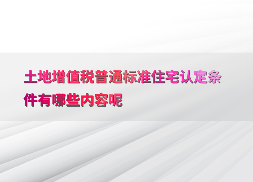 土地增值税普通标准住宅认定条件有哪些内容呢