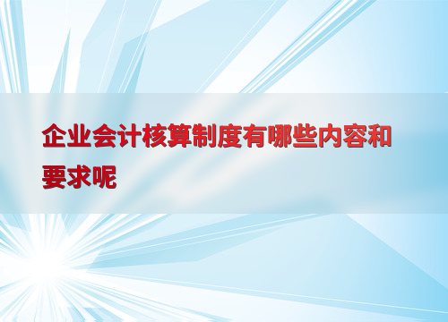 企业会计核算制度有哪些内容和要求呢
