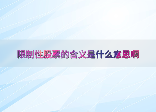 限制性股票是一种公司授予员工或其他相关人员的股票形式,但这些股票在一定条件下受到限制。
