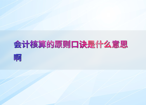 会计核算的原则口诀是什么意思啊