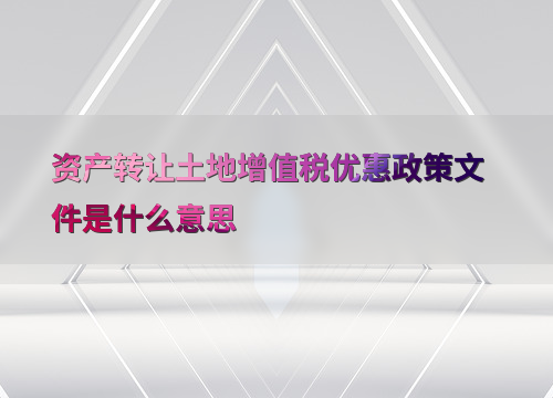 在财务会计领域,资产转让土地增值税优惠政策文件指的是政府为了促进经济发展和优化资源配置,针对特定类型的资产转让行为所制定的税收优惠政策。