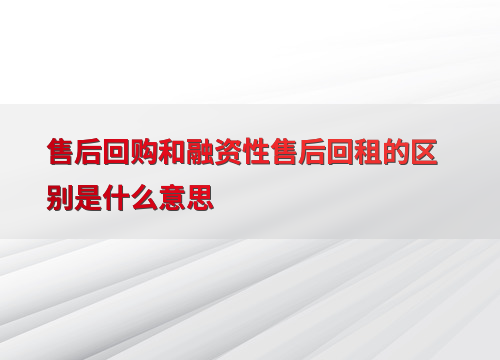 售后回购和融资性售后回租的区别是什么意思