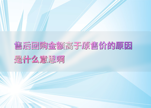 {为什么售后回购金额会高于原售价?}答:售后回购金额高于原售价通常是因为卖方希望通过这种方式获得短期资金支持,同时承诺未来的回购价格反映了预期的市场增值或利息成本。