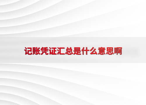 记账凭证汇总是什么意思啊
