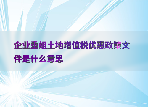 如何判断企业是否符合土地增值税优惠政策的条件?答:判断企业是否符合土地增值税优惠政策的条件通常需要考虑多个因素,包括但不限于企业的重组形式(如合并、分立等)、重组后的业务性质以及土地用途的变化情况。例如,如果企业在重组后继续从事与原企业相同的主营业务,并且土地用途没有发生实质性改变,则有可能符合优惠政策的条件。