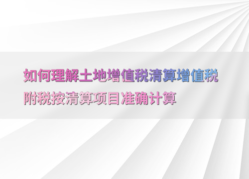 如何理解土地增值税清算增值税附税按清算项目准确计算