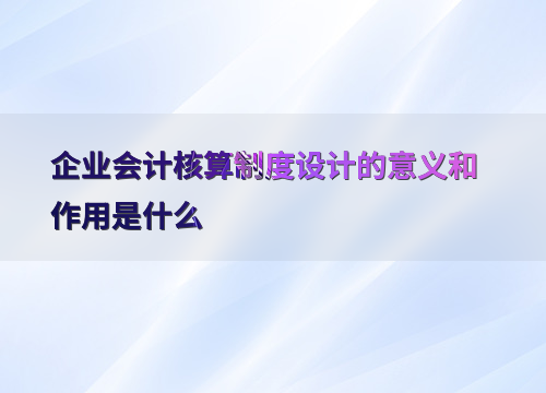 企业会计核算制度的设计对于企业的健康发展至关重要。