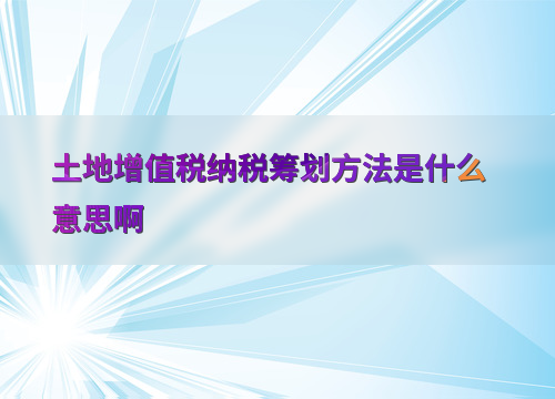 土地增值税纳税筹划方法是什么意思啊