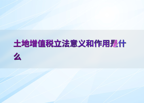 土地增值税立法意义和作用是什么