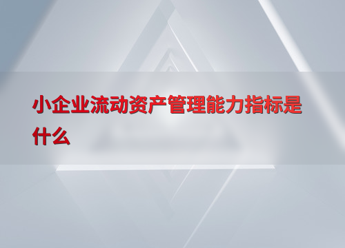 小企业流动资产管理能力指标是什么