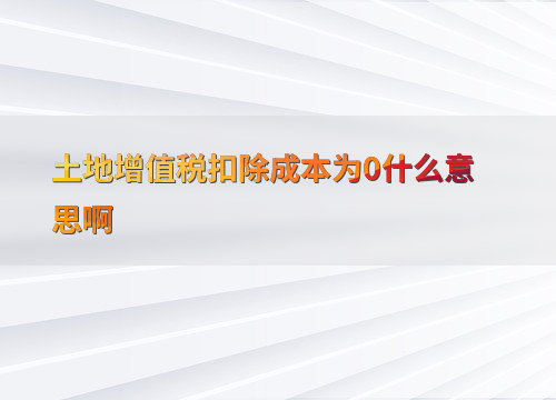 土地增值税扣除成本为0的含义