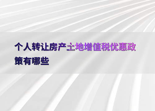 在当前的税收政策下,个人转让房产时可以享受多种土地增值税优惠政策。