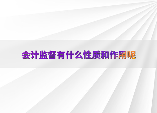 会计监督有什么性质和作用呢