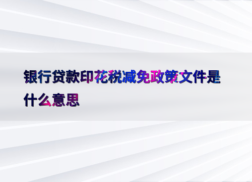 银行贷款印花税减免政策文件是指政府为了促进经济发展,减轻企业和个人的融资成本而发布的相关政策。