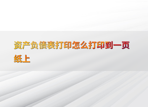 在处理财务报表时,特别是资产负债表,将其完美地打印到一页纸上可以提高工作效率和专业性。