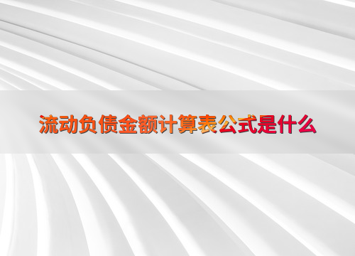 流动负债的主要组成部分包括应付账款、短期借款、应付工资、应交税费等。计算流动负债金额时,通常使用以下公式: