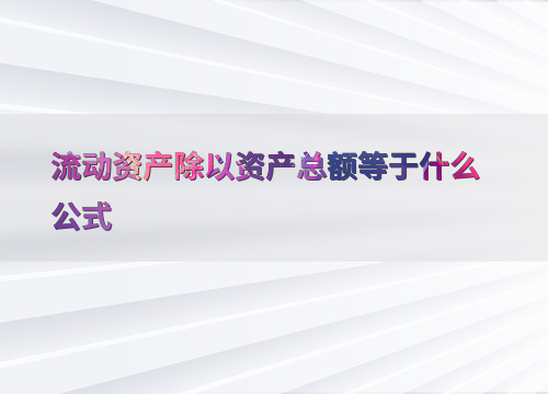 这个比率用于评估企业在短期内偿还债务的能力。流动资产包括现金、应收账款、存货等可以在一年内转换为现金的资产。而资产总额则涵盖了企业所有的资产,包括固定资产和无形资产。