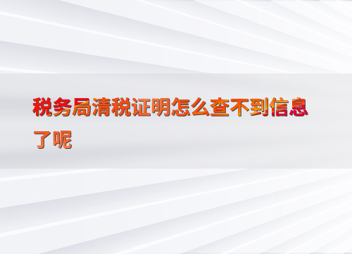 在处理公司财务事务时,有时会遇到税务局清税证明查不到信息的情况。