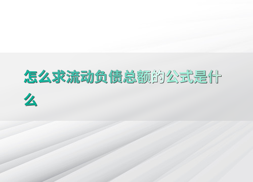 怎么求流动负债总额的公式是什么
