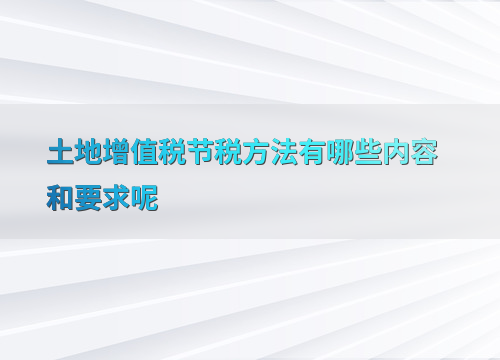 土地增值税节税方法有哪些内容和要求呢