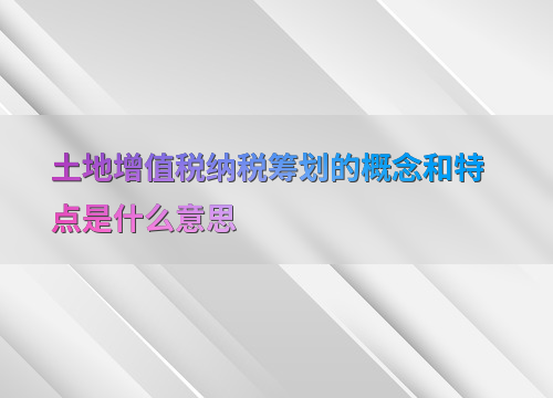 土地增值税纳税筹划的概念和特点是什么意思