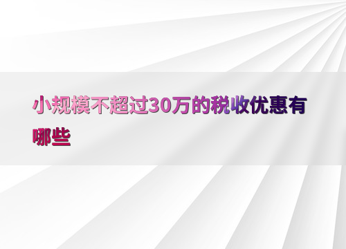 对于年销售额不超过30万元的小规模纳税人,国家提供了多种税收优惠措施。