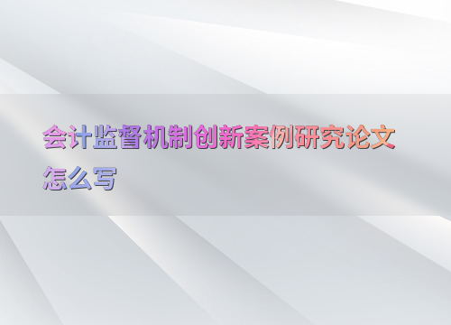 会计监督机制创新案例研究论文怎么写