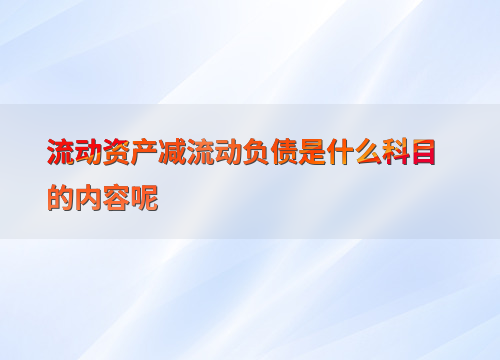 在财务会计中,流动资产减流动负债通常指的是企业的营运资本(Working Capital)。
