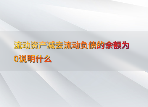 流动资产减去流动负债的余额为0说明什么