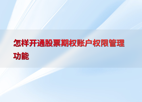开通股票期权账户权限管理功能需要投资者了解并遵循一系列规定和流程。