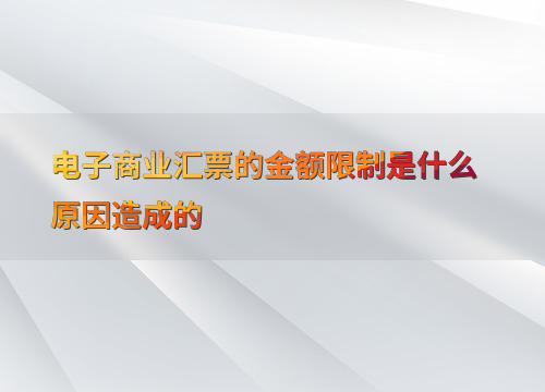 {为什么电子商业汇票需要金额限制?}答:电子商业汇票需要金额限制主要是为了控制金融风险和维护市场稳定。通过设定合理的金额上限,可以有效避免单一票据带来的过度集中风险,保护金融机构和投资者的利益。