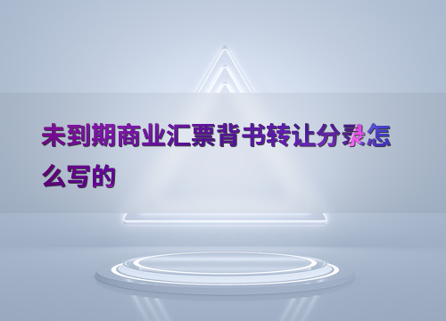 未到期商业汇票背书转让分录的基本原理