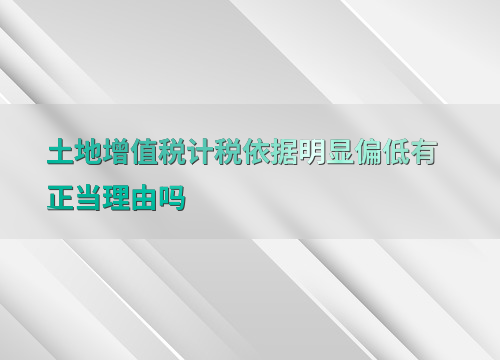 如何判断土地增值税计税依据偏低是否具有正当理由?答:判断土地增值税计税依据偏低是否具有正当理由,关键在于分析具体的市场环境和交易背景。如果是因为市场价格波动、政策调整或其他不可抗力因素导致的,则可以认为具有正当理由。反之,如果是人为操纵或虚假交易,则不应视为正当。