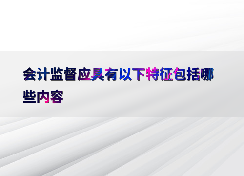 会计监督应具有以下特征包括哪些内容