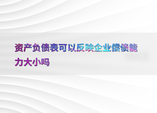 资产负债表能否完全反映企业的实际偿债能力?答:虽然资产负债表提供了重要的财务信息,但并不能完全反映企业的实际偿债能力。企业的现金流状况、市场环境以及管理策略等因素都会影响其偿债能力。