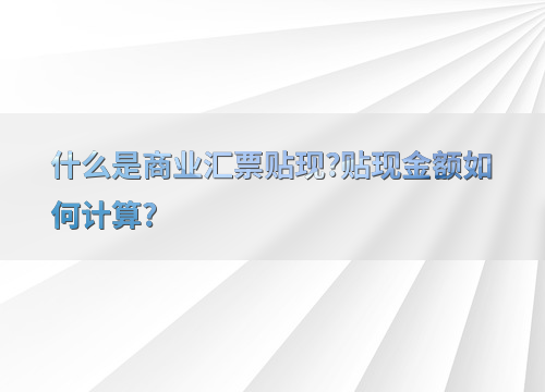 什么是商业汇票贴现?贴现金额如何计算?